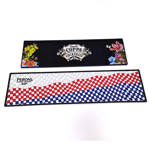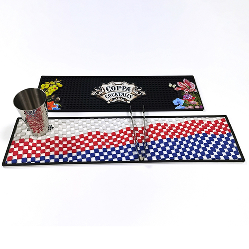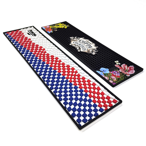 Designed for bar counters, this bar runner mat provides a large surface area for branding. It is made with durable materials and features high-resolution printing for logos and designs. Perfect for bars, clubs, and beverage promotions.